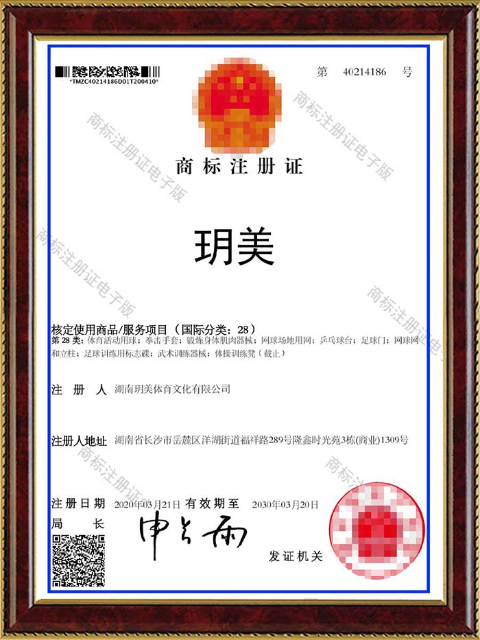 玥美28類商標注冊證